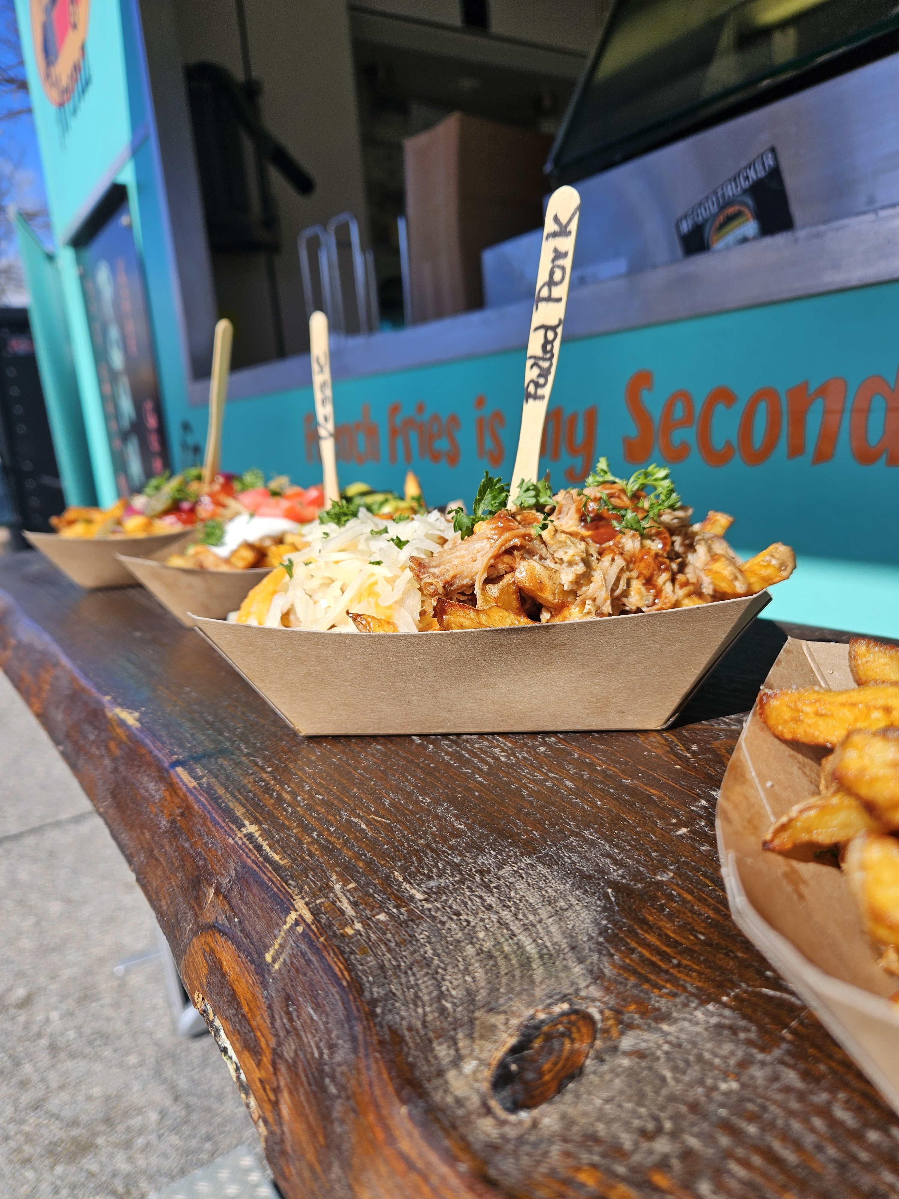 Frische Kartoffeln werden vor Ort zubereitet, von den zwei 9000w Fritteusen wir geben vollgas für euch ,dazu unsere Toppings